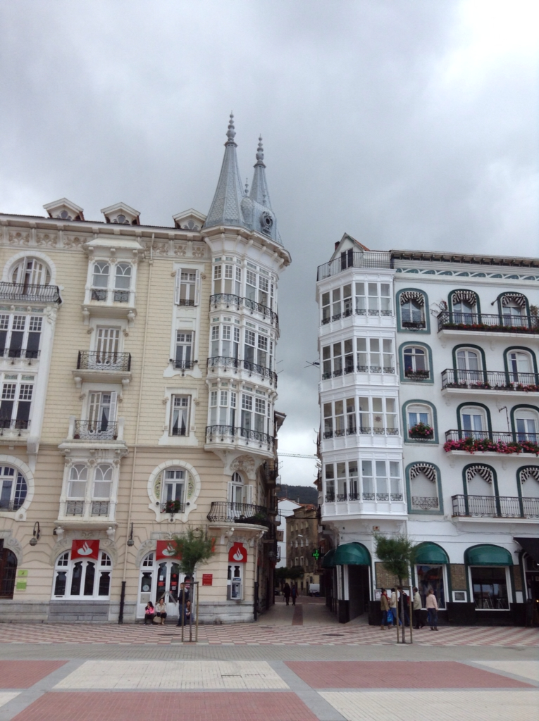Within the dorm, alarms started going off around 0530. The Hospitalero put music on about 0630 to get everyone up and moving. We were all psyched and ready to go rain or no rain. A little coffee got us started. Up the stairs we went to a beautiful paved path looking down at the waves crashing below. We walked for about 11k. Along the way we saw horses and mountain goats We stopped at Miono for coffee. We then took the suggestion of several locals to follow the road and not the marked path. There has been so much rain the path they said was to slippery. We went by road until we got into Castro Urdiales. Once you arrive in a city, it is suggested you go to information and pick up a map and ask where everything you desire is, such as alberque, grocery store, fish restaurant. We walked with George out to the albergue which was located at the edge of town right behind the bull ring; and, then returned to our lovely pension in the middle of town. La Mar cost 44 euros. Very clean and beautiful and a heater to dry socks and boots.